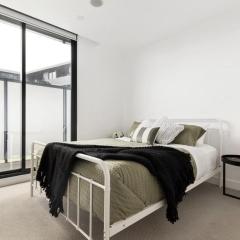 This fresh and fabulous two-bedroom, two-bathroom apartment in the prestigious Collins & Queen development offers a relaxed and stylish lifestyle. Designed by renowned Rothelowman, it boasts an open-plan living area with Smeg cooking appliances, including a gas cooktop, fan-forced electric oven, and concealed dishwasher. The living space flows seamlessly through a full height sliding glass door to a private balcony, where you can enjoy sweeping views of distant mountains and city lights. The apartment’s two generous bedrooms feature built-in robes, with one offering direct balcony access. Two chic bathrooms, including an ensuite to the main bedroom, provide excellent functionality. The building also offers a host of attractive features, including heating, air conditioning, and a concealed laundry. Additional comforts include secure entry with intercom, elevator access, undercover parking, and walk-in storage cage. Downstairs, you’ll find a shared courtyard with a large deck, barbecue, and bocce court, perfect for entertaining. Located just moments from trams, Thompson Reserve, cafes, restaurants, and shops, this apartment is also close to DFO Essendon, freeway access, and easy transport links to the city. Perfectly suited for both owner-occupiers and investors, this is an exceptional opportunity in a vibrant and convenient location.